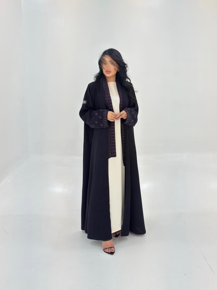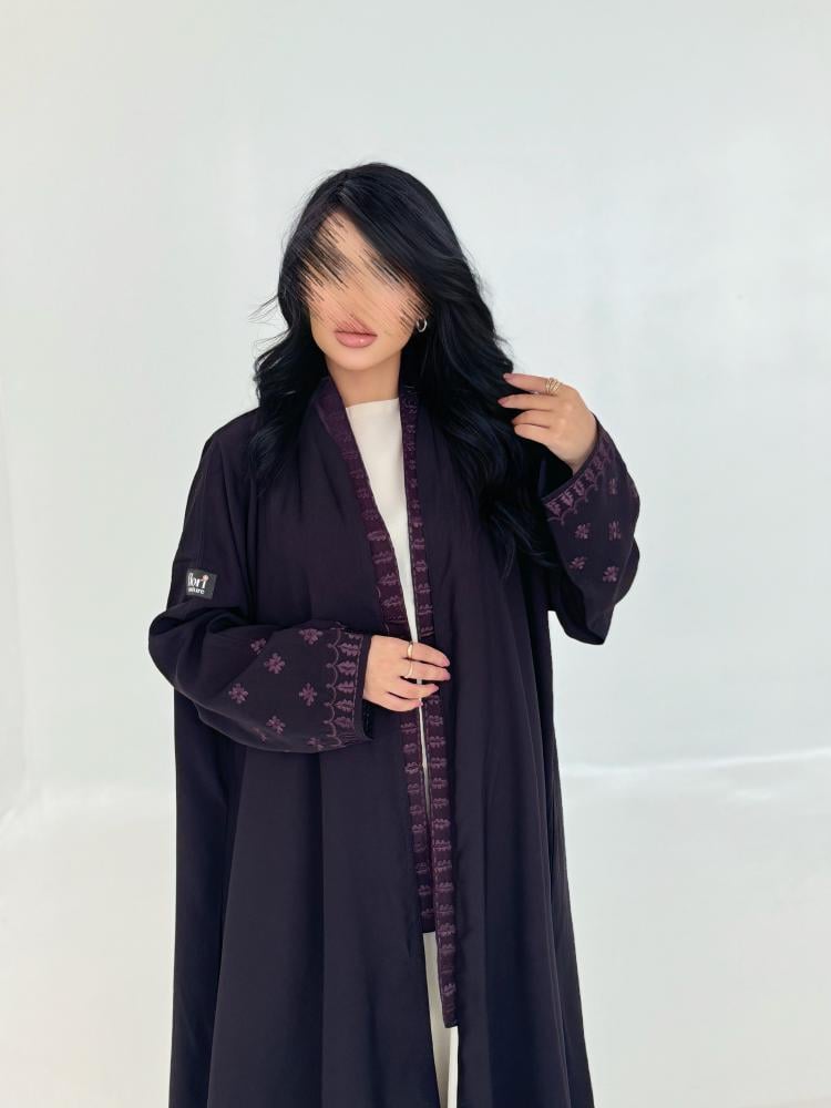 تطريز باللون البنفسجي مميز و خاص بمتجر فلوري بالاكمام والطرحة